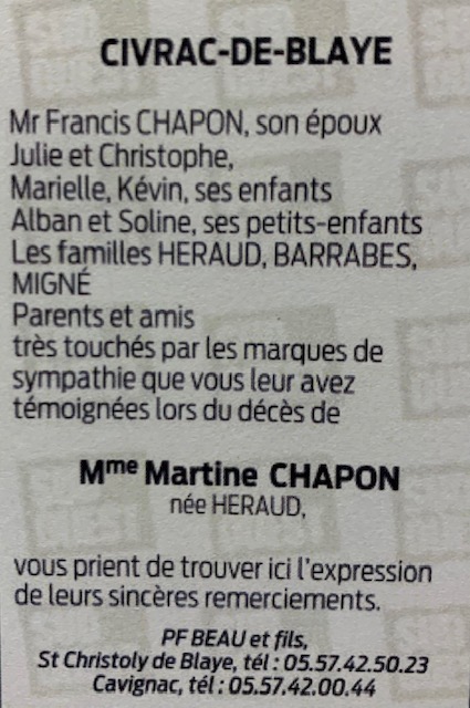 Domiciliée à Civrac-de-Blaye (33920, France)