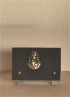 Plaque granit livre grise motif Vierge (dimension 20X14) - 1 inter à choisir parmi notre sélection d’inters de plus de 100 textes. avec lien de parenté, d’amitié et de message de regret. (ex: A mon Papa, A notre Ami, Souvenir, etc...)